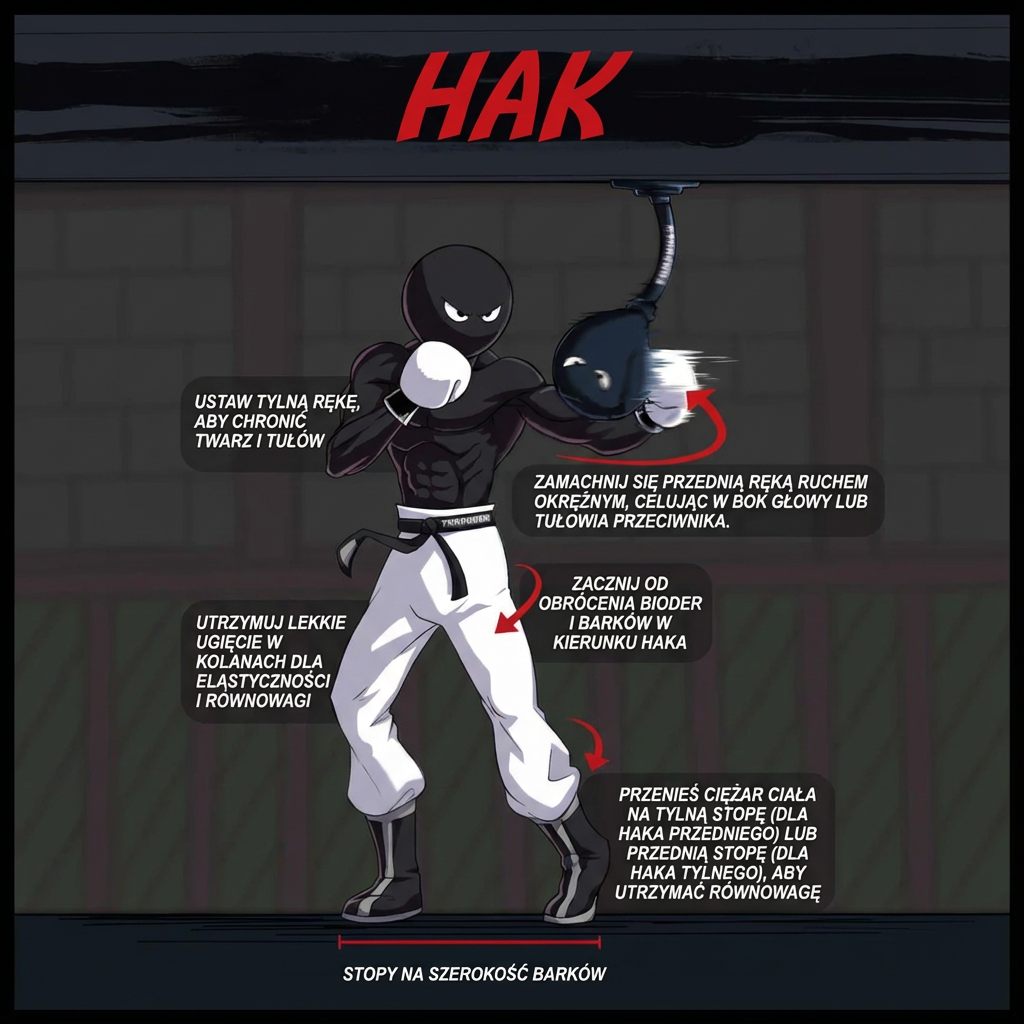 Hak uruchamia całe ciało. To skręt, zamach i uderzenie w jednym — świetny sposób na poprawę równowagi, siły mięśni głębokich i orientacji przestrzennej. A do tego po prostu daje niesamowite uczucie, gdy trafia w cel.