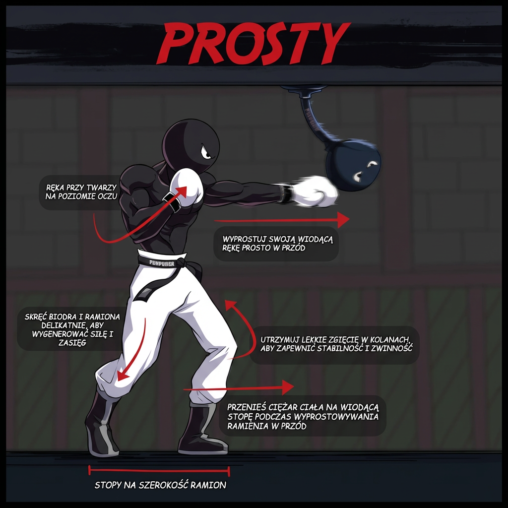 Prosty cios to pierwszy ruch Twojego dziecka — ostry i szybki jak błyskawica. Pomaga budować koordynację i wyczucie czasu, jednocześnie trzymając je „na palcach”. Idealny do spalania energii i wyostrzania refleksu.